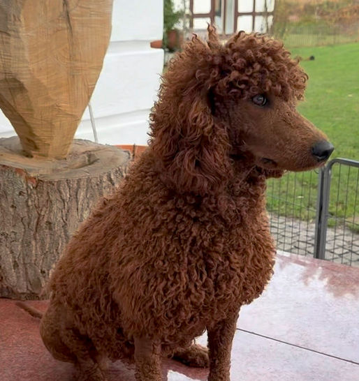 Poodles in the color red are a worldwide rarity, provided they do not light up and retain their color even in adulthood. Most poodles light up. In order to keep a constant coloring, I have been dealing with this topic for years and imported and mated dogs internationally, because the breeding of dark, not or hardly fading red tones is extremely difficult. The first priority of our breeding is the health of the dog, followed by the focus on special character traits (family dogs).